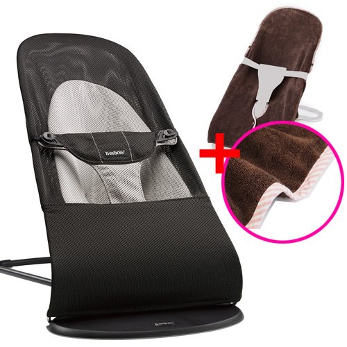 【今治タオルブランケットセットPK】babybjorn(ベビービョルン) バウンサー バランス ソフト メッシュ ブラック (バウンサーカバー ピンクストライプ)