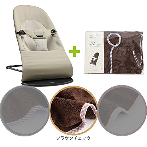 【今治タオルブランケットセットBR】babybjorn(ベビービョルン) バウンサー バランス ソフト カーキ/ベージュ (バウンサーカバー ブラウンチェック)