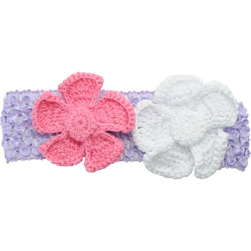 マンディ ヘアバンドwithクロシェットフラワー2個セット Aセット ラベンダーヘアバンド&ホワイト・ホットピンクフラワー