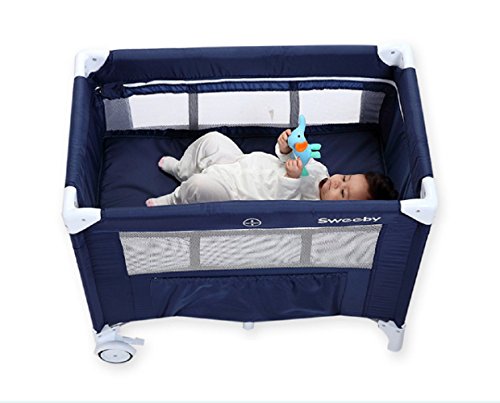 ベビーベッド 折りたたみ 軽量 携帯しやすい モスキートネット付き 多機能 遊び プレゼント (ブルー)