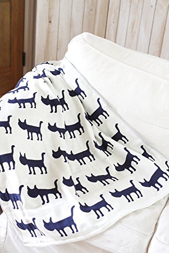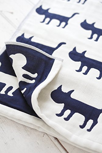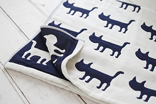 BABY tree 綿ガーゼ ケット ベビー ブランケット ひざ掛け 100×95cm (ねこ ネイビー)