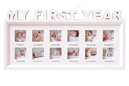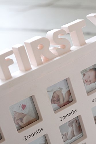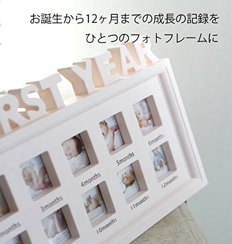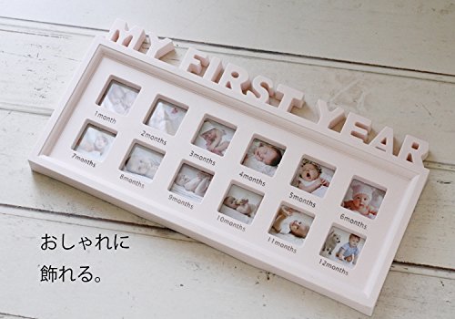 - 0ヶ月から12ヶ月まで、赤ちゃんの一番かわいらしい成長記録の写真をワンフレームで飾ることができます。