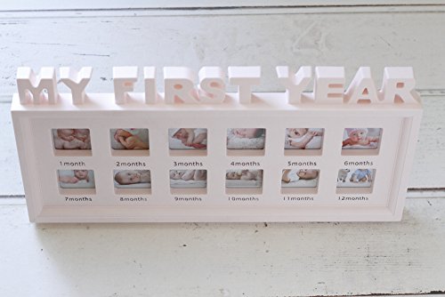 0ヶ月から12ヶ月まで、赤ちゃんの一番かわいらしい成長記録の写真をワンフレームで飾ることができます。