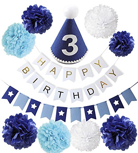 BABY tree バースデー デコレーション セット 1歳 2歳 3歳 誕生日 飾り (3歳 ブルー)