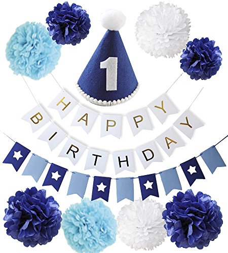 BABY tree バースデー デコレーション セット 1歳 2歳 3歳 誕生日 飾り (1歳 ブルー)