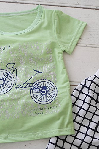 BABY tree 半袖 子供 キッズ Tシャツ & 短パン 上下セット ルームウエア (90, グリーン 自転車)