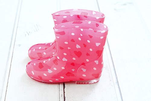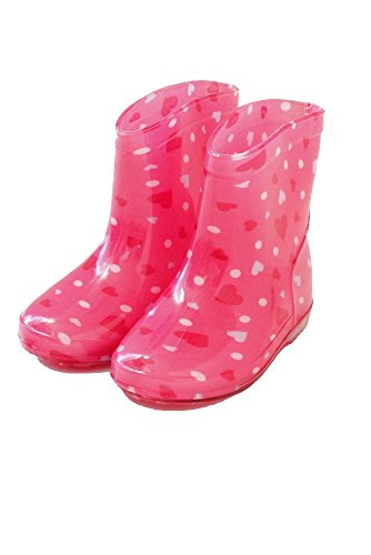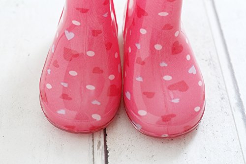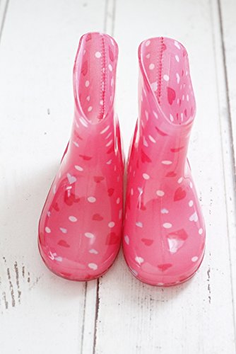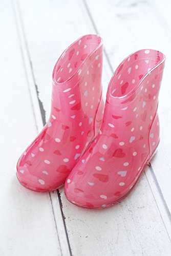 BABY tree キッズ 短め レインブーツ (16cm, ハート ピンク)