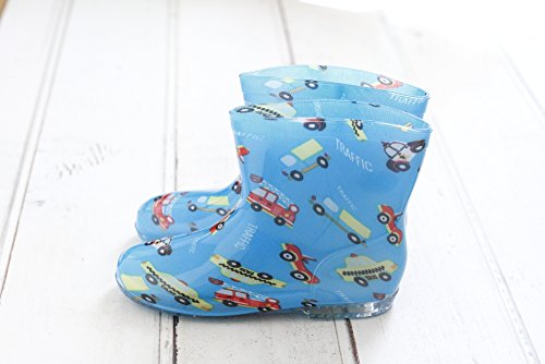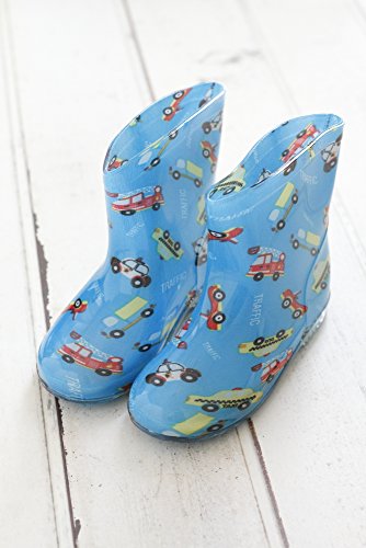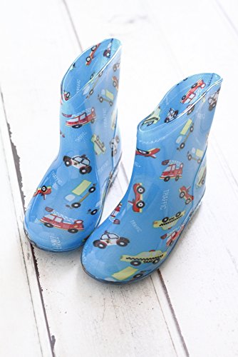 BABY tree キッズ 短め レインブーツ (19cm, くるま ブルー)