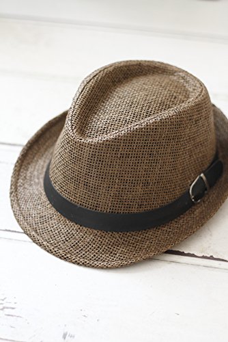 BABY tree おしゃれ キッズ 中折れ帽 子供用 麦わら 帽子 (ブラウン)