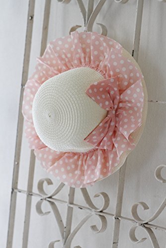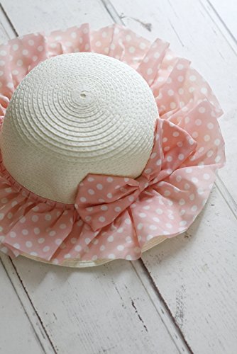 - ドット柄のふんわりリボンが帽子のつば全体に施され、サイドの大きなリボンがアクセントになっています。つばがついているので、紫外線、暑さ対策にも!