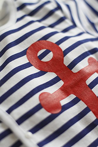 - 赤い錨マークがポイントになった、おしゃれかわいい、ボーダー×マリンのロンパースです。