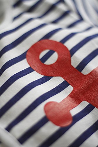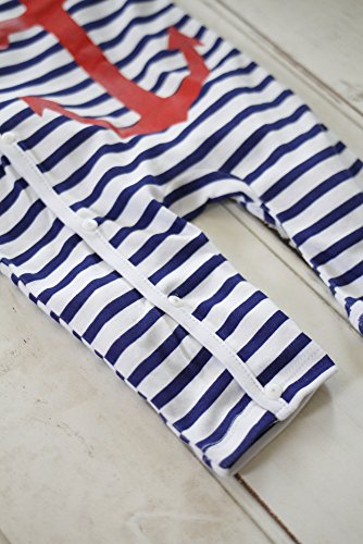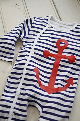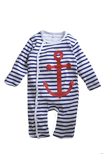 - 赤い錨マークがポイントになった、おしゃれかわいい、ボーダー×マリンのロンパースです。