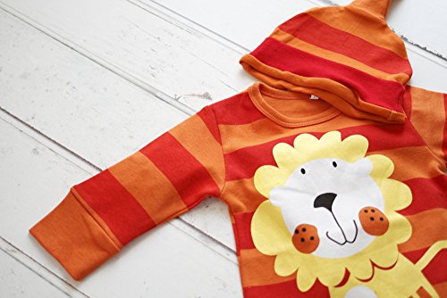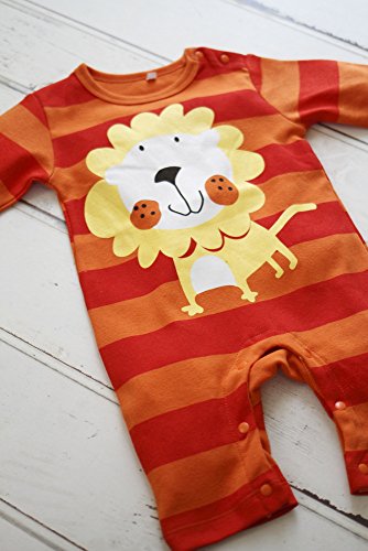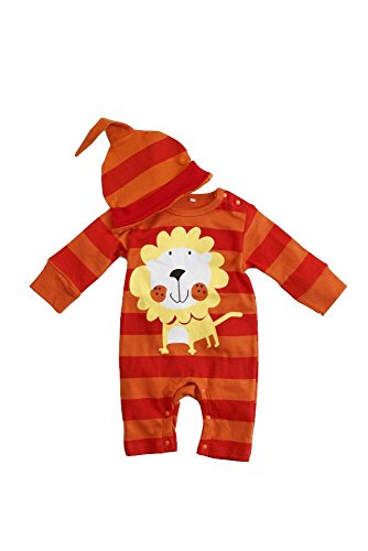BABY tree 帽子 付き! かわいい ベビー 長袖 アニマル カバーオール ロンパース 80 90 95 ( ライオン ) (80)