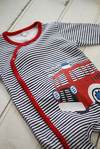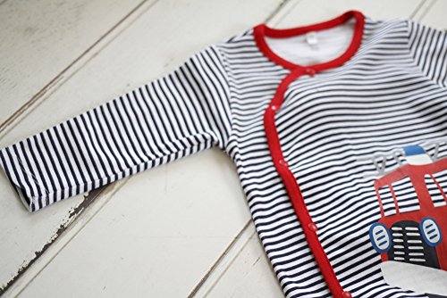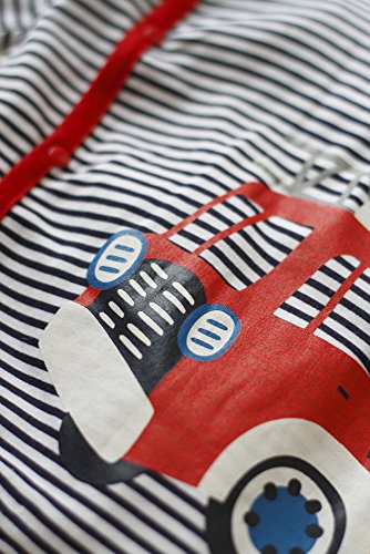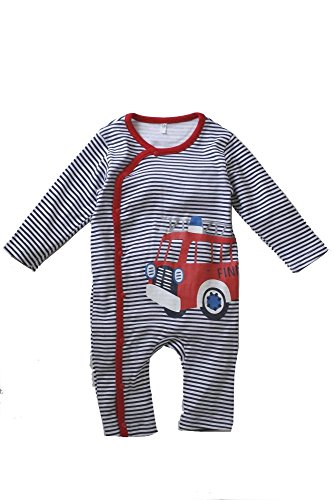 - おしゃれな細ボーダーに、男の子の大好きなくるま柄プリントを配した長袖ロンパースです。