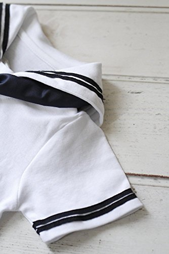 - かわいいセーラー服の 赤ちゃん用 カバーオール。おむつがえ、お着替えもラクラクの前開きタイプです。