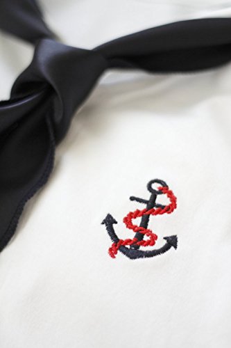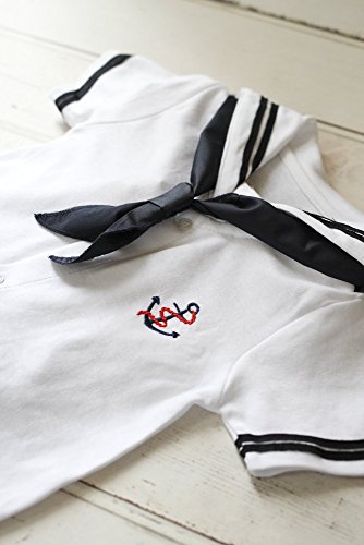 - 胸には錨の刺繍がポイントになっています。メイン素材はやわらかいコットンなので、赤ちゃんの肌にもやさしく、着心地も抜群です。スカーフは、取り外し可能です。