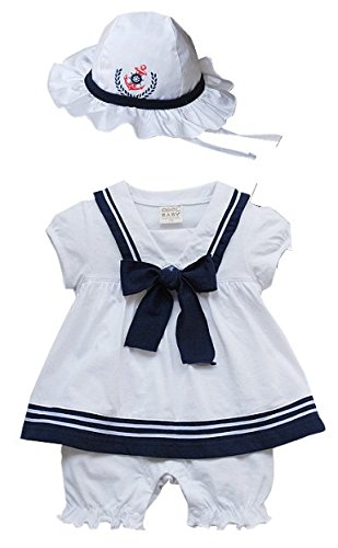 [ ベイビーツリー ] BABY tree 女の子 マリン セーラー ベビー服 帽子つき セット (ホワイト 95)