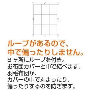 - お布団カバーと結ぶためのループが8ヶ所に付いてます。カバーの中でお布団が偏りません。