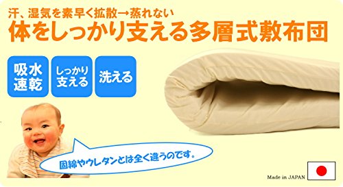 - 多層式の中綿が良い寝姿勢を作ります。柔かすぎず、体が沈み込まない敷布団です。