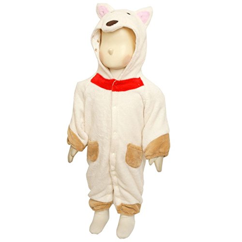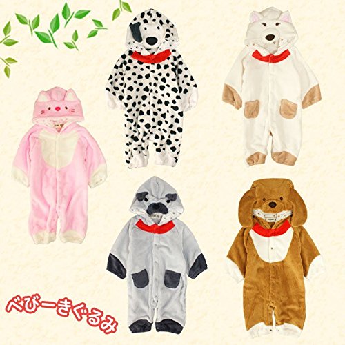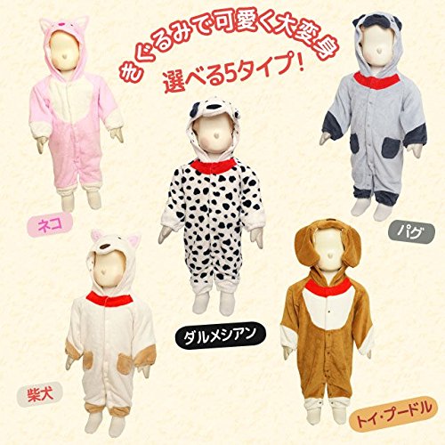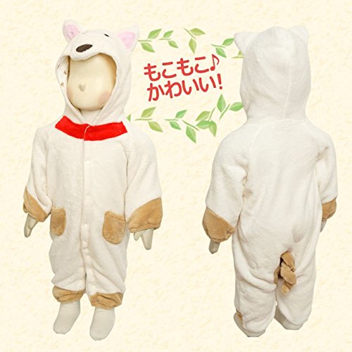 ベビー カバーオール 動物 着ぐるみ ふわもこもこ フリース なりきり コスチューム ホワイト-柴犬 70cm