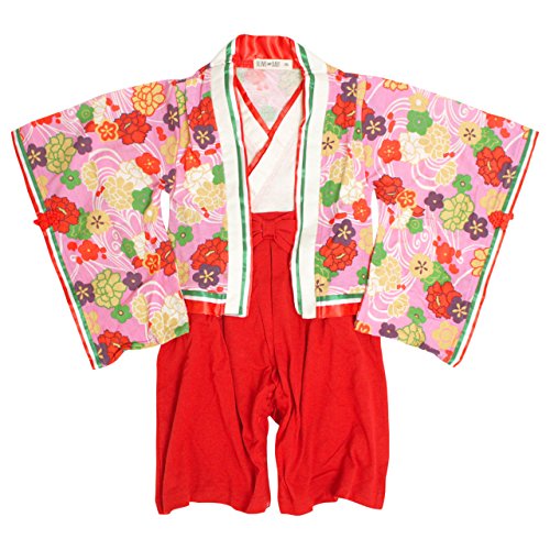 十二単風 袴(はかま) ロンパース フォーマル ベビー 和装 カバーオール お祝い ピンク-20673 90cm