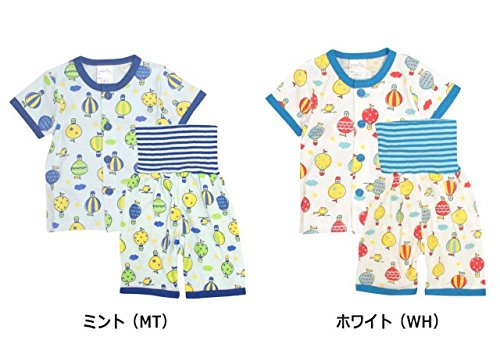 パジャマ 半袖 ベビー 男の子 前開きパジャマ 腹巻付 丸首 ハーフパンツ 寝巻き ホワイト-WH 90cm