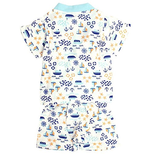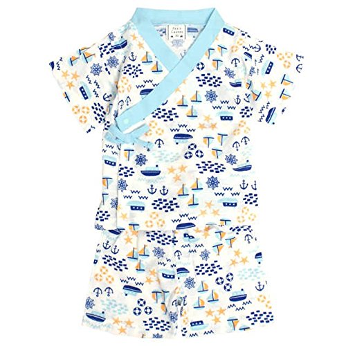 ベビー 甚平風 パジャマ 半袖 男の子 前開きパジャマ 腹巻付 寝巻き 綿混素材 赤ちゃん ホワイト-WH 90cm
