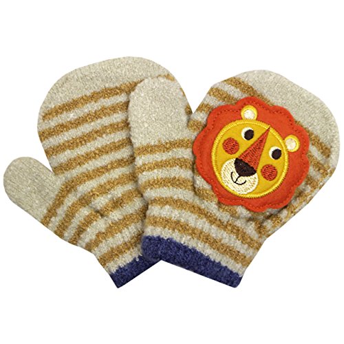 手袋 男の子 ベビー キッズ のびのび手袋 子供手袋 ニット手袋 ライオン ミトン ベージュ 3-5才