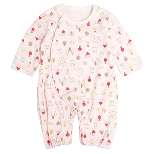カバーオール ベビー 乳幼児 女の子 長袖 ロンパース 赤ちゃん くまさん柄 ピンク 60~70cm