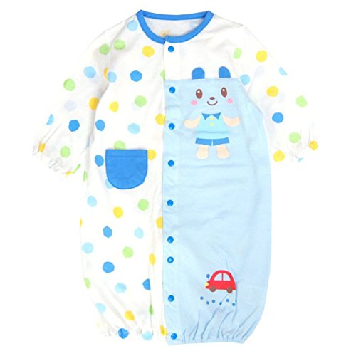 ベビー カバーオール 新生児 ツーウェイオール 前開き ロンパース 赤ちゃん ベビー服 サックス 50-70cm