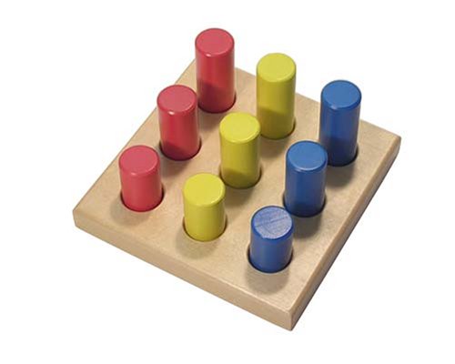 ペグ棒をボードに差し込み手先の器用さを養うと共に色合わせや高さあわせといった課題をこなす遊び方ができます。