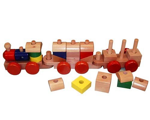 子どもの大好きな汽車ポッポと、連結可能な車両に載せることのできる穴あき積木の一体型、木製幼児用おもちゃ。 穴のあいた積木の色や形を認識しながら木の棒にはめこむ作業は、総合的な知的能力の発達を促す。