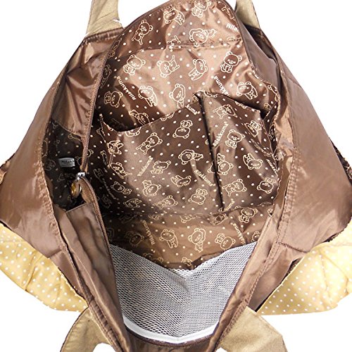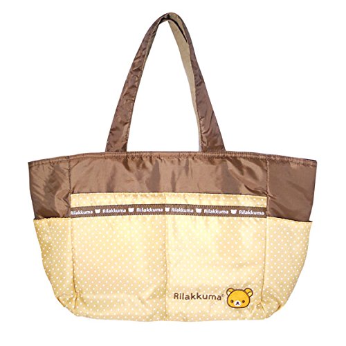 リラックマのマザーズバッグが登場です!可愛いドット柄にリラックマのキュートなデザイン。すべりにくい素材の肩紐を使用し、バッグ内側の底面にICカードが入るポケットが付いていたりと、使い勝手も抜群です!軽くて、汚れてもサッと拭けるポリエステル素材が嬉しい♪