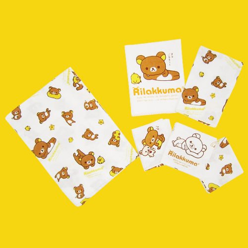 ゆったりまったりリラックマのガーゼセットです。入浴からお風呂あがりまでたっぷり使えます。やわらかな肌ざわりで、お子様にも安心。