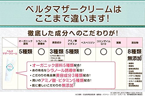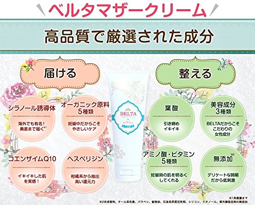 BELTAのお客様の生の声から生まれた「ベルタマザークリーム」産後もキレイでいて欲しい!そんな想いで開発しました。 有名な「シラノール誘導体※」を配合・さらに体に優しいオーガニック原料5種類・コエンザイムQ10・ヘスペリジン配合を贅沢に配合!