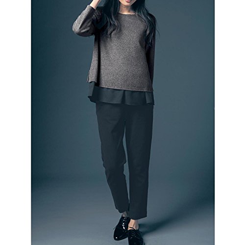 授乳対応 マタニティ トップス&パンツ セット ライト杢グレー×ブラック系 サイズ:マタニティL