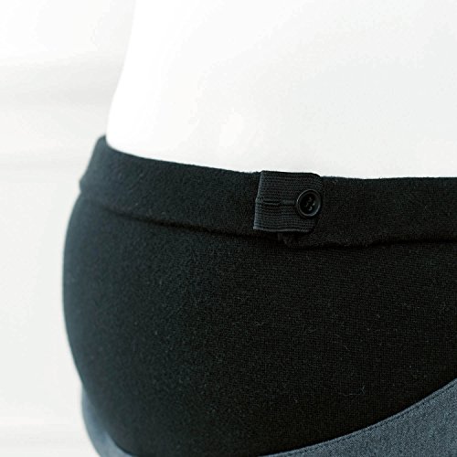 - ●前:左右ポケット、中央飾りボタン●後ろ:左右飾りフラップ、腰部分にボタンホール付きゴム(調節可)、ベルトループ付き●(マタニティM)でひざ幅約19、裾幅約15.5cm