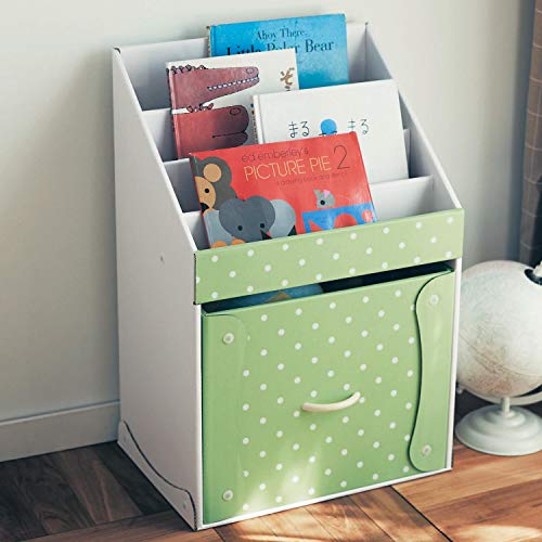 絵本の表紙を前に向けて置ける、小さな子どもが使いやすいラック。下段は本を立ててしまえる仕切り付きと、おもちゃをポンポンしまえるボックス型引出しの2タイプから選べます。