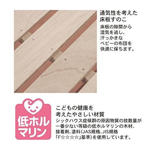 - ●耐荷重量/ベビーベッド時:60kg、下部収納棚:15kg、収納ラック時:棚板15kg、デスク時:天板10kg