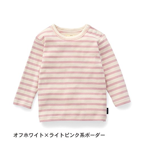 【ベビー服】フライス長袖Tシャツ オフホワイト×ライトピンク系ボーダー 70cm