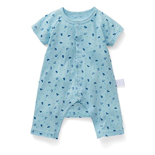伸縮性に優れ、一年を通して着られるのが嬉しいフライス素材を使用。綿100%だからやさしい肌ざわり。秋からは重ね着で活躍する半袖です。ベビーの脚の形に合わせたM字設計とお尻のマチで、脚の動きを妨げません。裾は太ももまで包み込む長さで安心。首すわり前でもお着替えがしやすい前全開スナップボタン留め仕様です。一枚でも着られるデザインが人気。