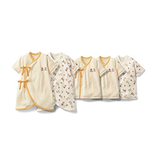 - [短肌着]●(50)総丈35cm●前:全開ひも結び、内側ひも結び[コンビ肌着]●(60)総丈45cm●前:全開ひも結び、内側ひも結び、股下全開スナップボタン留め[セット共通内容]