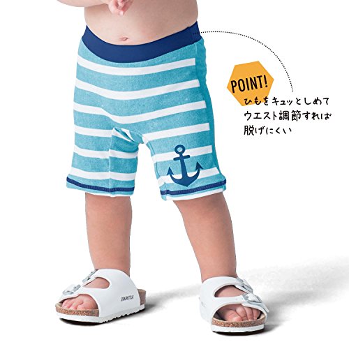 ウエスト調整できるので、脱げにくい ウエスト部分にはひもが入っているので、ベビーの体の大きさに合わせて調節可能です。バックにはポケット付きで、後ろ姿もおしゃれ!おそろい柄のスイムキャップ(別売り)と合わせると、全身コーディネイトが楽しめます。