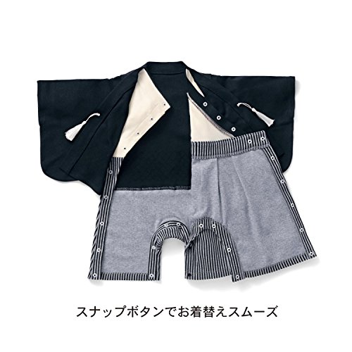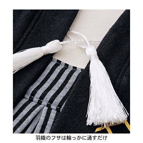 - (70)総丈52 (80)総丈58 (90)総丈64cm ●前:左右紋柄プリント、中央飾りフサ、前―右側全開スナップボタン留め、股下全開スナップボタン留め ●後ろ:中央紋柄プリント ●羽織付き風
