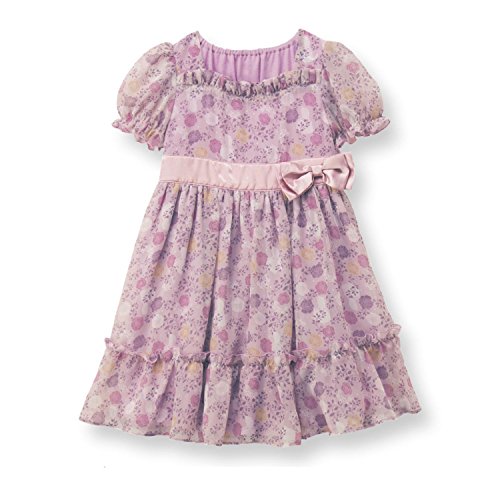 ソフィアをモチーフとした総柄のシフォンドレス。スカート部分はカットソー素材、チュール、シフォンを重ね、ふんわりと広がるようになっています。ウエストのサテンリボンがアクセントに。(C)Disney