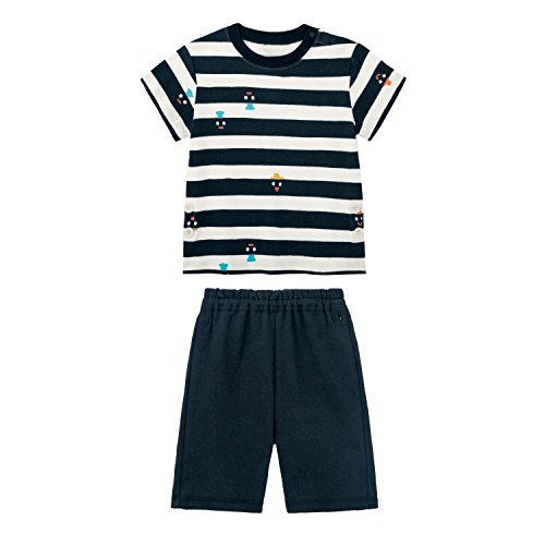 「しましまぐるぐる」のイラストが主役の、インパクト大なパジャマ。毎日のお着替えが待ち遠しくなりそうなデザインが揃いました。ボトムスのウエスト両サイドのボタンでトップスをボトムスに連結でき、お腹が出るのを防ぎます。綿100%のスムース素材でやわらかくなめらかな着心地。