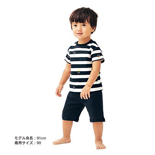 お腹が出にくい半袖スムースパジャマ しましまぐるぐるシリーズ 黒ボーダー サイズ:80