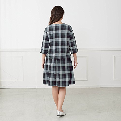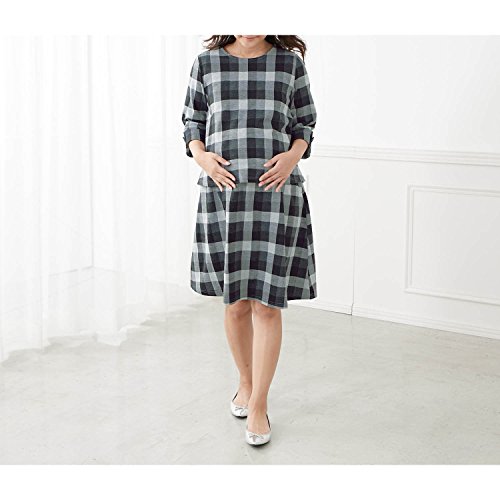 授乳対応 マタニティ 健診 セットアップ風 ワンピース ブラック系チェック サイズ:マタニティL