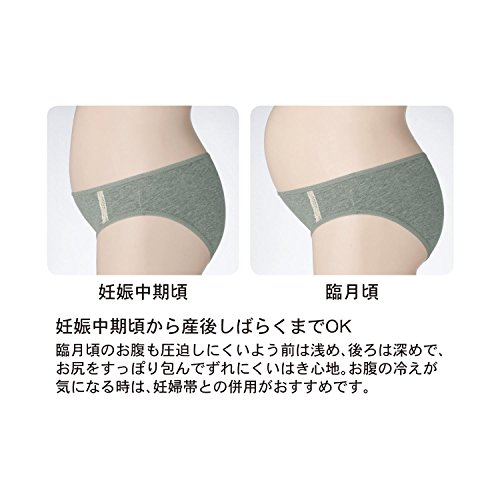 レース使いが可愛く、産後も使えるデザイン 伸びのいいベア天竺素材でぴったりフィット。前は浅めで、お腹や胃を圧迫せず、ウエスト部分が子宮にあたらないつくりで、お腹の赤ちゃんにもやさしいローライズショーツ。妊婦帯とも重ならず、暑くなる季節も快適。お腹が目立たない妊娠初期、ショーツのゴムさえ気になる妊娠後期、普通のショーツがきつい産後にも活躍します。お腹が出しやすく検診時にも便利。クロッチ部分は薄色の綿100%。肌が敏感になるマタニティ期にやさしく、おりものの変化もわかりやすい仕様です。