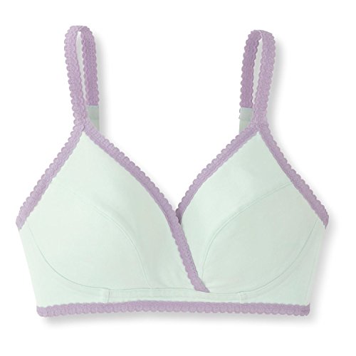 レース付きノンワイヤーブラ タテヨコによく伸びる、ソフトなベア天竺素材が嬉しいブラジャー。肩紐はストレッチレースで可愛さをプラスしました。ストラップも見えてもOKだから安心。